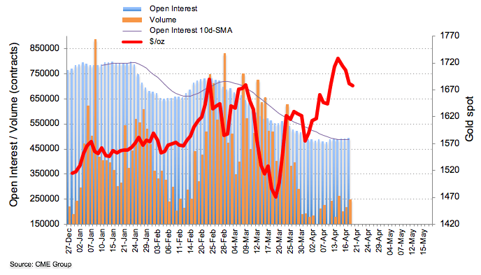 Gold prices are expected to shed further ground in the short-term following Friday’s pullback amidst rising open interest and volume. That said, the next support of significance emerges at the late March peaks in the $1,640 per ounce troy.
