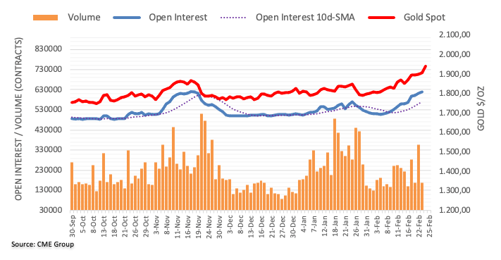 Gold resumed the upside on Wednesday amidst rising open interest, indicative of rising bets for the continuation of the uptrend in the very near term at least. Further gains in bullion could now target the $2,000 mark per ounce troy in the longer run.