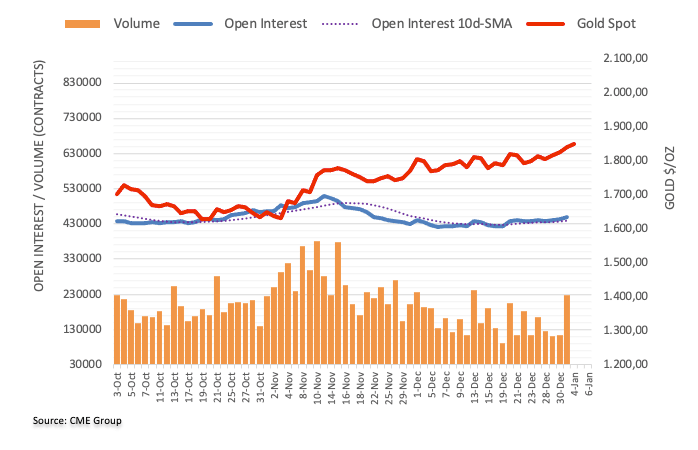 Gold prices extended the uptrend to the $1850 region for the first time since mid-June on Tuesday. The move was amidst rising open interest and volume and exposes the continuation of this move in the very near term. The surpass of the $1850 zone should put bullion en route to the June 2022 high at $1879 (June 13).