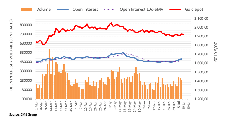 Friday’s marked advance in gold prices was on the back of rising open interest and suggests that further gains could lie ahead in the very near term. That said, the precious metal faces initial up-barrier at the so far July tops past the $1930 mark per troy ounce.