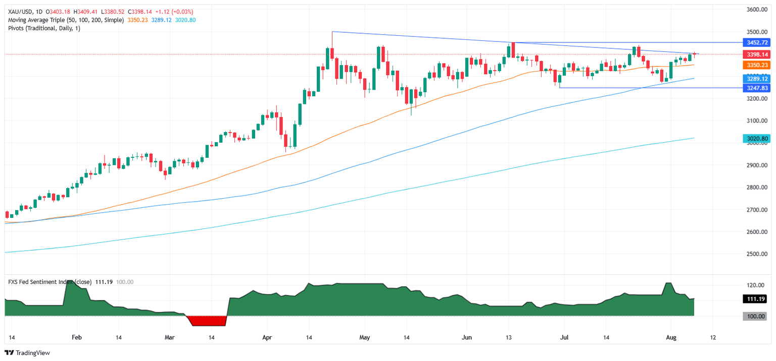 Despite this, XAU/USD spot prices continued to consolidate at around the $3,400 figure, as investors seem convinced that the Federal Reserve (Fed) will slash rates by 25 basis points (bps) at the September meeting.