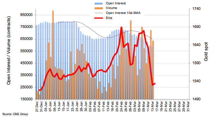 In light of preliminary data from CME Group for Gold futures markets, open interest extended the downtrend on Friday, shrinking by nearly 10.5K contracts. In the same line, volume reversed two builds in a row and went down by around 88.1K contracts.