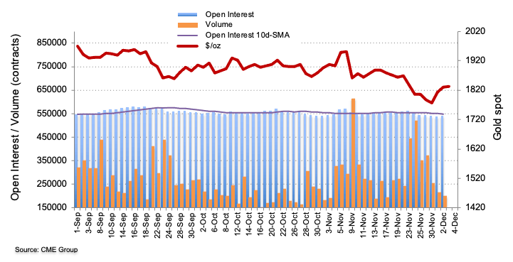 Prices of the ounce troy of gold edged higher on Wednesday, extending the bounce off monthly lows near $1,760 (November 30) amidst increasing open interest. That said, the yellow metal now targets the mid-$1,800s, or September’s lows. This area is reinforced by the proximity of the 21-day SMA ($1,854).