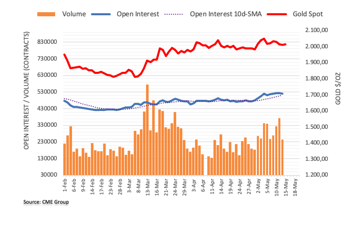 Friday’s third consecutive daily drop in gold prices was on the back of shrinking open interest and volume, removing strength from further weakness and opening the door to a potential rebound in the short-term horizon. In the meantime, solid support for the commodity remains at the key $2000 mark per ounce troy.