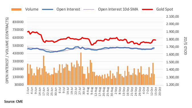 CME Group’s preliminary readings for gold futures markets noted open interest rose for the second session in a row on Friday, this time by just 731 contracts. Volume, instead, shrank by around 142.2K contracts, the largest daily drop since July 29.