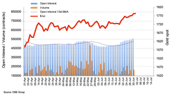 Prices of the ounce troy of the precious metal keeps pushing higher and a test of the key $1,800 mark looks imminent. This view is supported by rising open interest and volume, while the unremitting advance of the coronavirus pandemic also collaborates with the upbeat sentiment surrounding Gold.