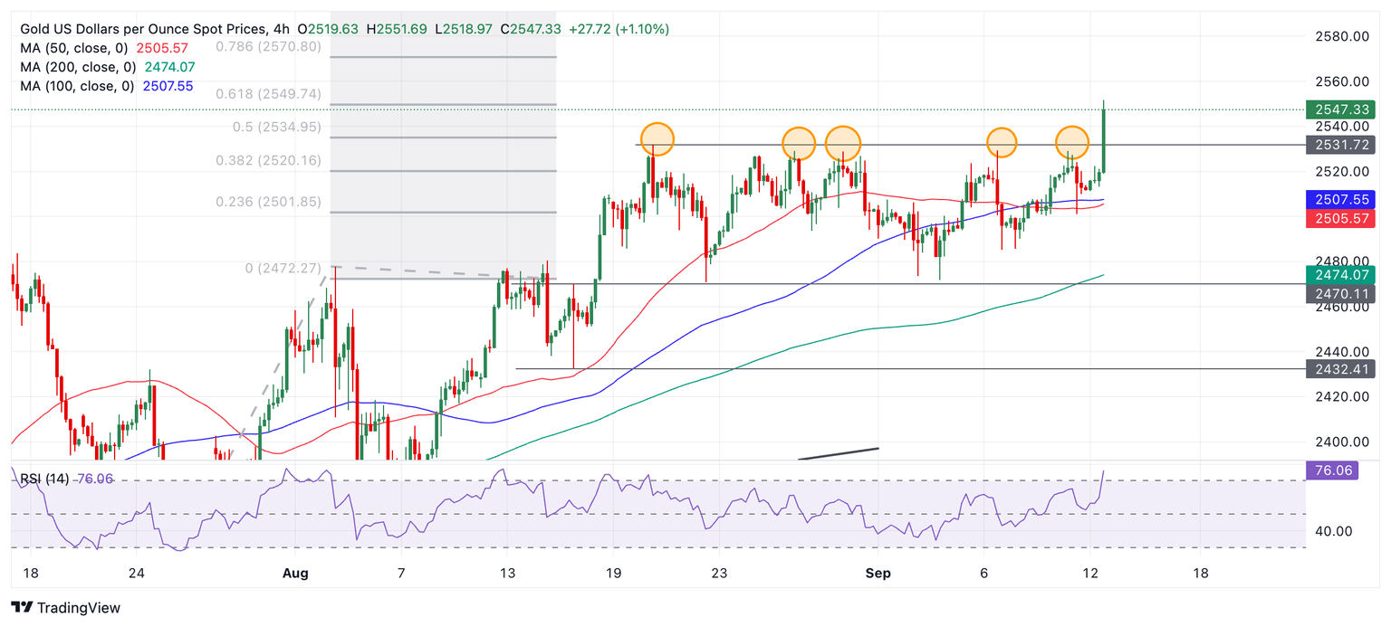 Gold (XAU/USD) breaks out of its multi-week sideways range and posts a new high for 2024 at $2,551 during the US session on Thursday.