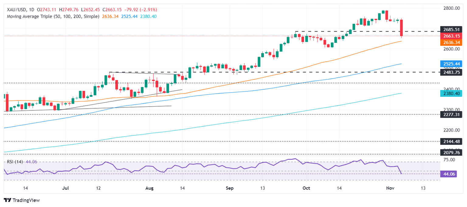 Gold plunged to a three-week low below $2700 a troy ounce on Wednesday after the 2024 US Presidential election. The Republican candidate, former President Donald Trump, won the contest, bolstering the Greenback and US Treasury bond yields. Therefore, the XAU/USD posted losses of over 2.50% and traded at $2,667 at the time of writing.