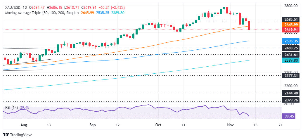 XAU/USD Technical Outlook: Gold price tumbles with sellers eyeing $2,600