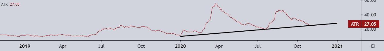 However, markets rarely move this far without offering a discount, especially in an asset class such as gold which is proving to be very choppy of late offer a higher ATR for the year 2020: