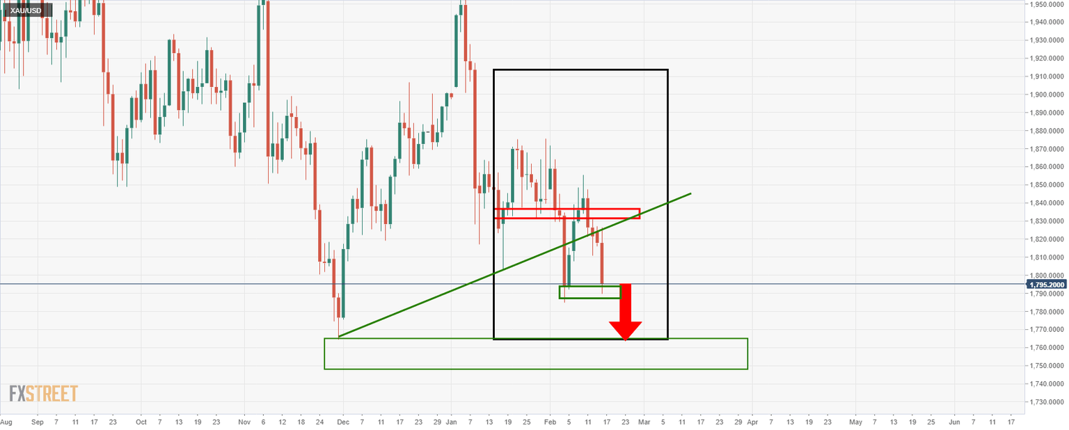Gold Price Analysis: Bears need break of current support for $1,765 target