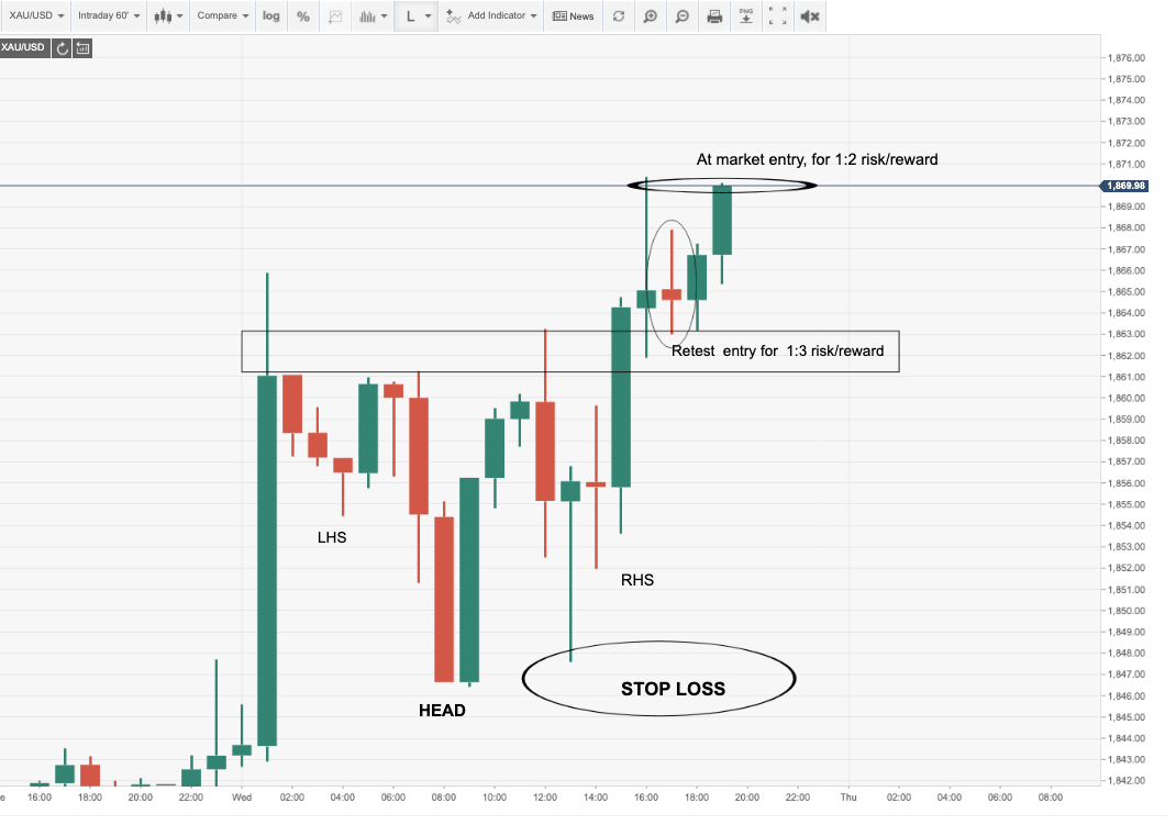 - Gold has reached a fresh rally high in a breakout of the reverse head and shoulders.