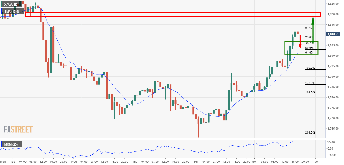 Gold Price Analysis: Bulls setting up for upside extension to -61.8% Fibo/$1,817/20