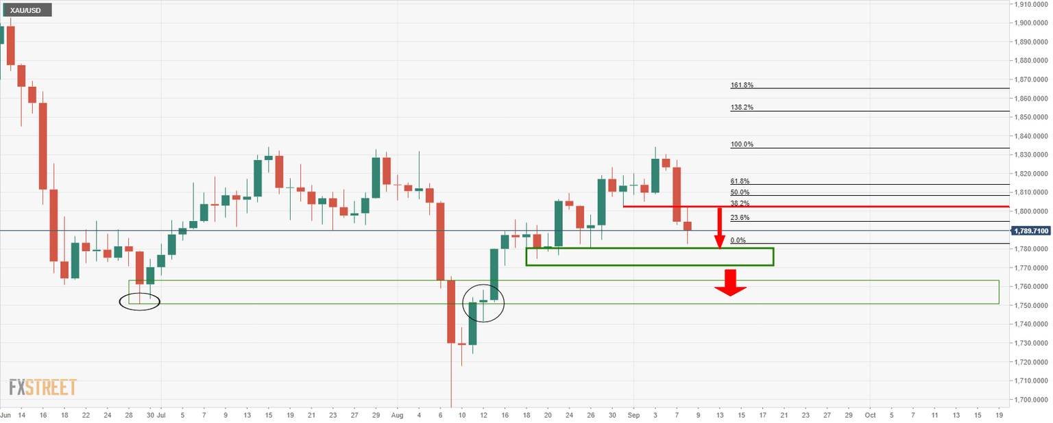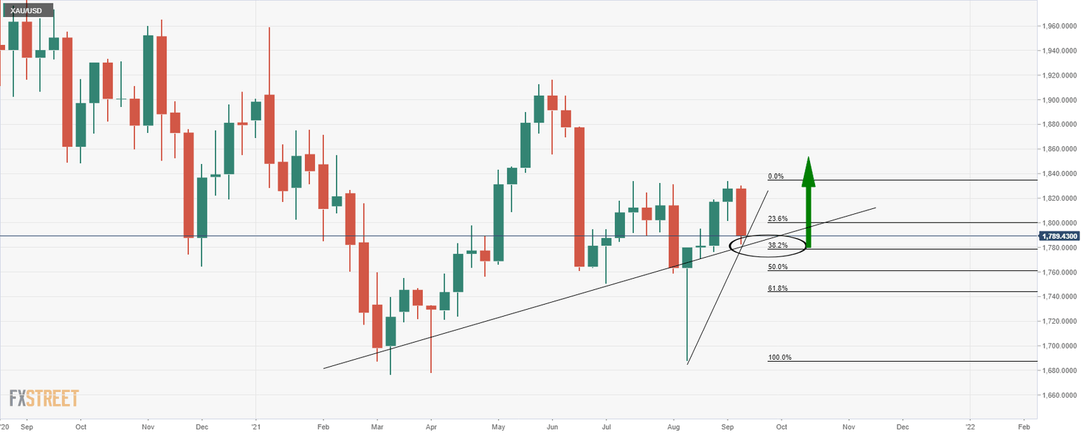 At the time of writing, the price of gold is holding up in what has been a bearish weekly correction to the day's lows of $1,782.47 so far.