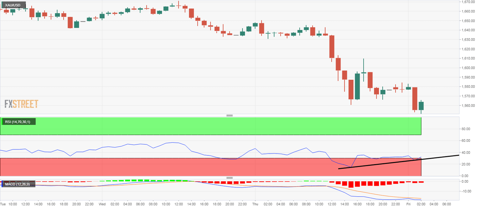 At press time, the hourly chart is reporting a bullish divergence of the RSI and the MACD histogram. As a result, the metal could recover to $1,580.