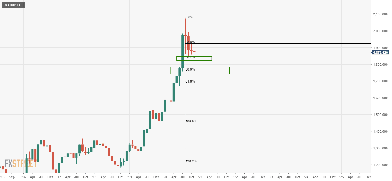 The following is a top-down analysis that illustrates where there could be, first, a bullish opportunity in a healthy correction, to second, a subsequent downside extension.