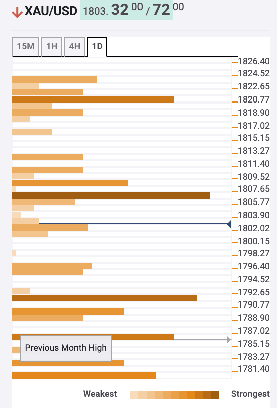 The price of gold has been on the move on Thursday, taking on bullish commitments just below the psychological $1,800 level.