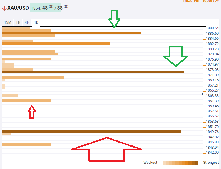 The upside target, in case of a recovery, awaits at $1,886, which is a juncture of levels including the BB 1h-Upper and the PP one-week S1.