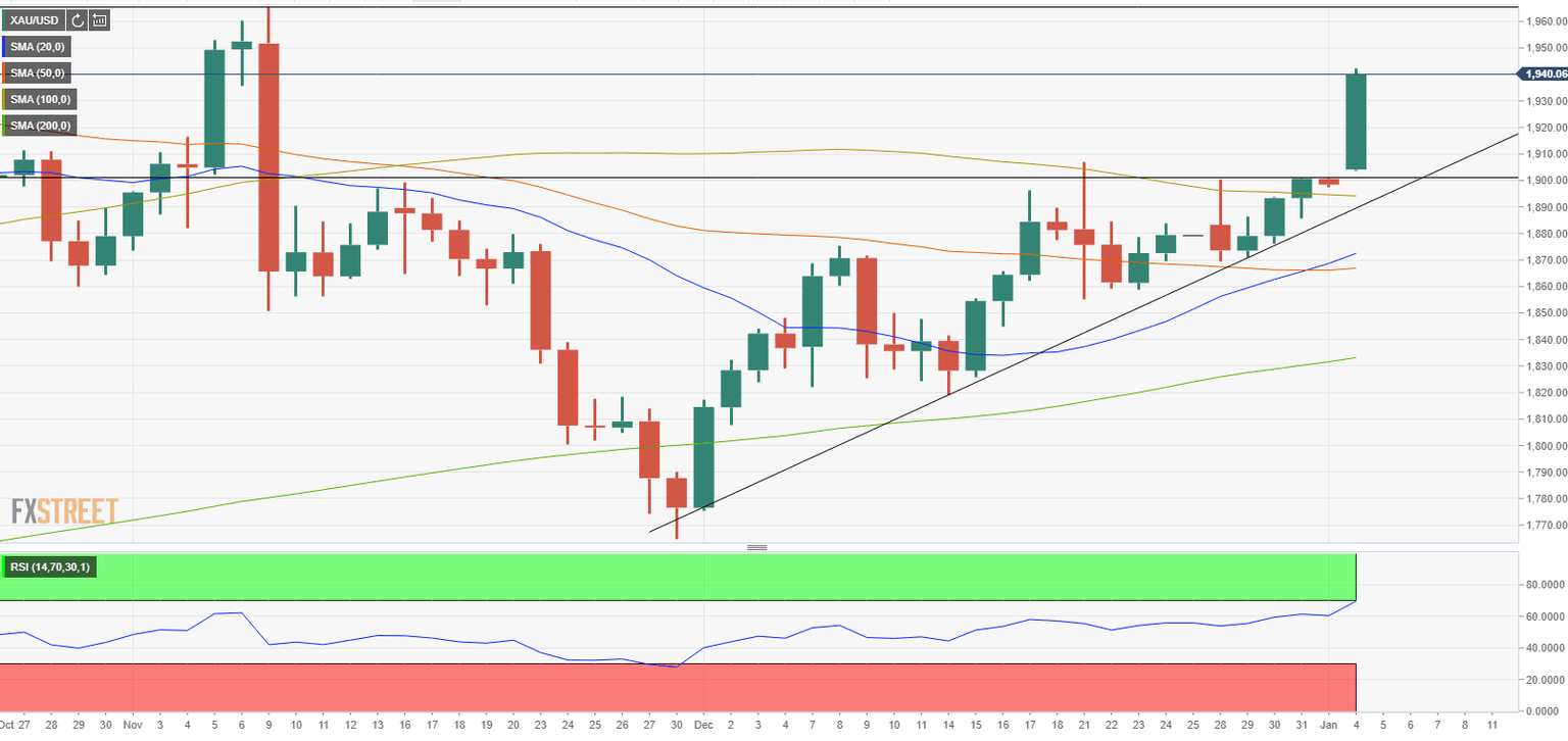The XAU/USD pair opened sharply higher on the first day of 2021 and preserved its bullish momentum with the technical breakout attracting more buyers. As of writing, the pair was up 2.45% on a daily basis at $1,940.