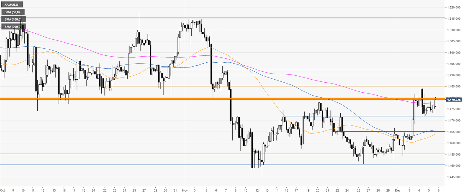 Gold kicked off December with a bullish reversal to the 1480 resistance. Just above the level the 50 and 100-day simple moving averages (SMAs) are also acting as dynamic resistances.