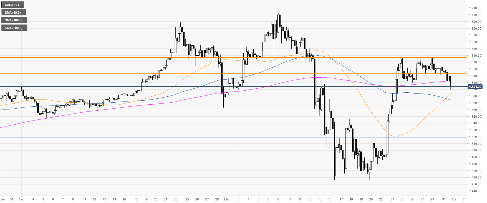 Gold Price Analysis: XAU/USD loses the 1600 mark as bears drive gold to four-day lows
