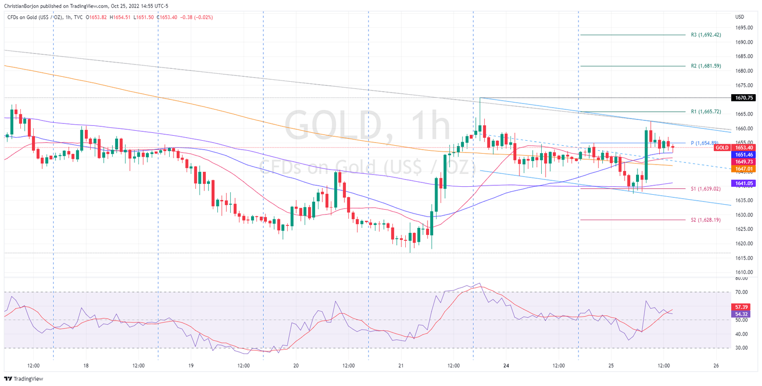 Gold price advances steadily during the North American session, though it remains capped below the 20-day Exponential Moving Average (EMA), despite falling US Treasury yields underpinning the yellow metal prices, as gold recovers after hitting a daily low of $1638.40. At the time of writing, the XAU/USD is trading at $1653 a troy ounce, above its opening price by 0.24%.
