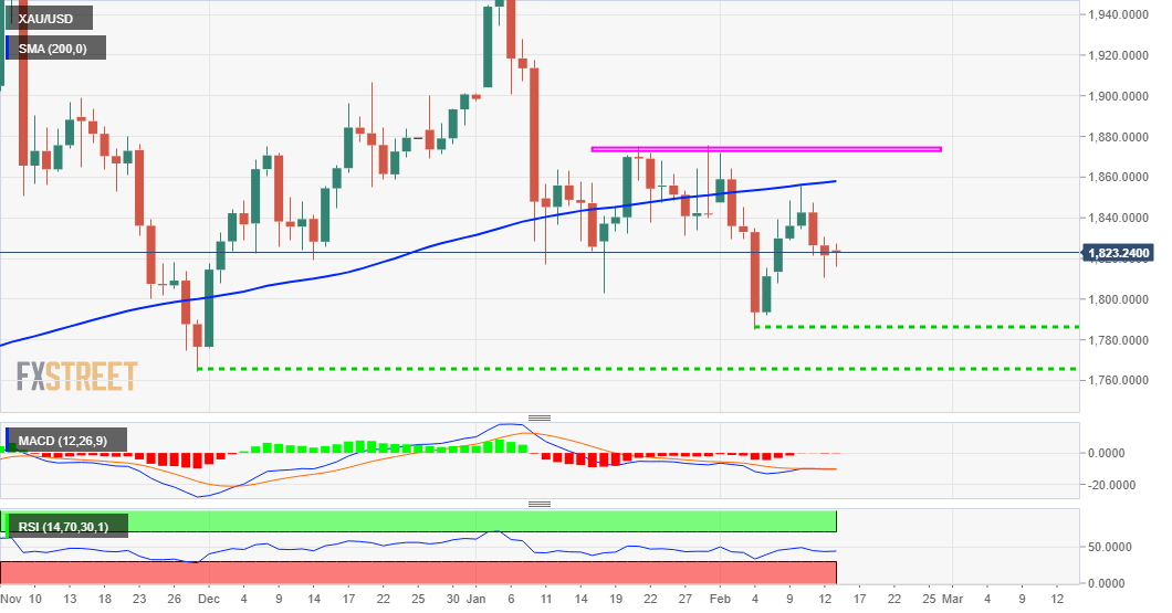 Given the recent failure near the very important 200-day SMA, the near-term bias remains tilted in favour of bearish traders. That said, some resilience ahead of the $1800 mark warrants caution for aggressive bearish traders and before positioning for any further depreciating move.