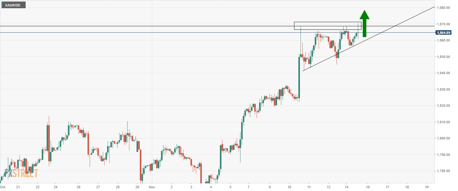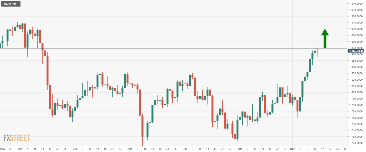 Gold Price Analysis: XAU/USD probing multi-month highs at $1870 amid bullish bank calls