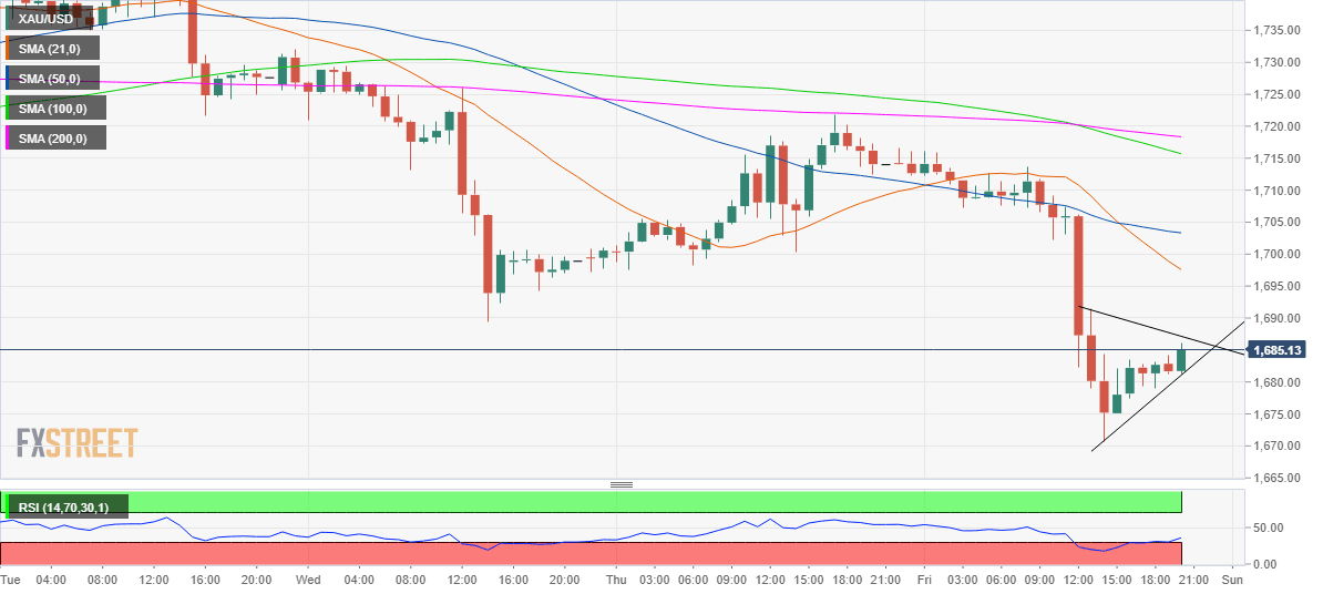 - XAU/USD dropped below major hourly Simple Moving Averages (HMA).