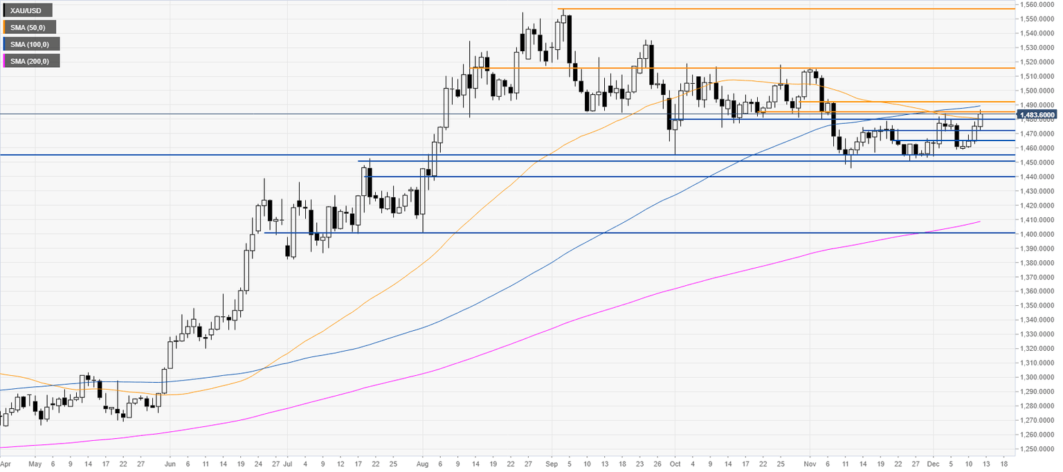 Gold Price Analysis: XAU/USD trading at one-month highs, challenging $1485/oz