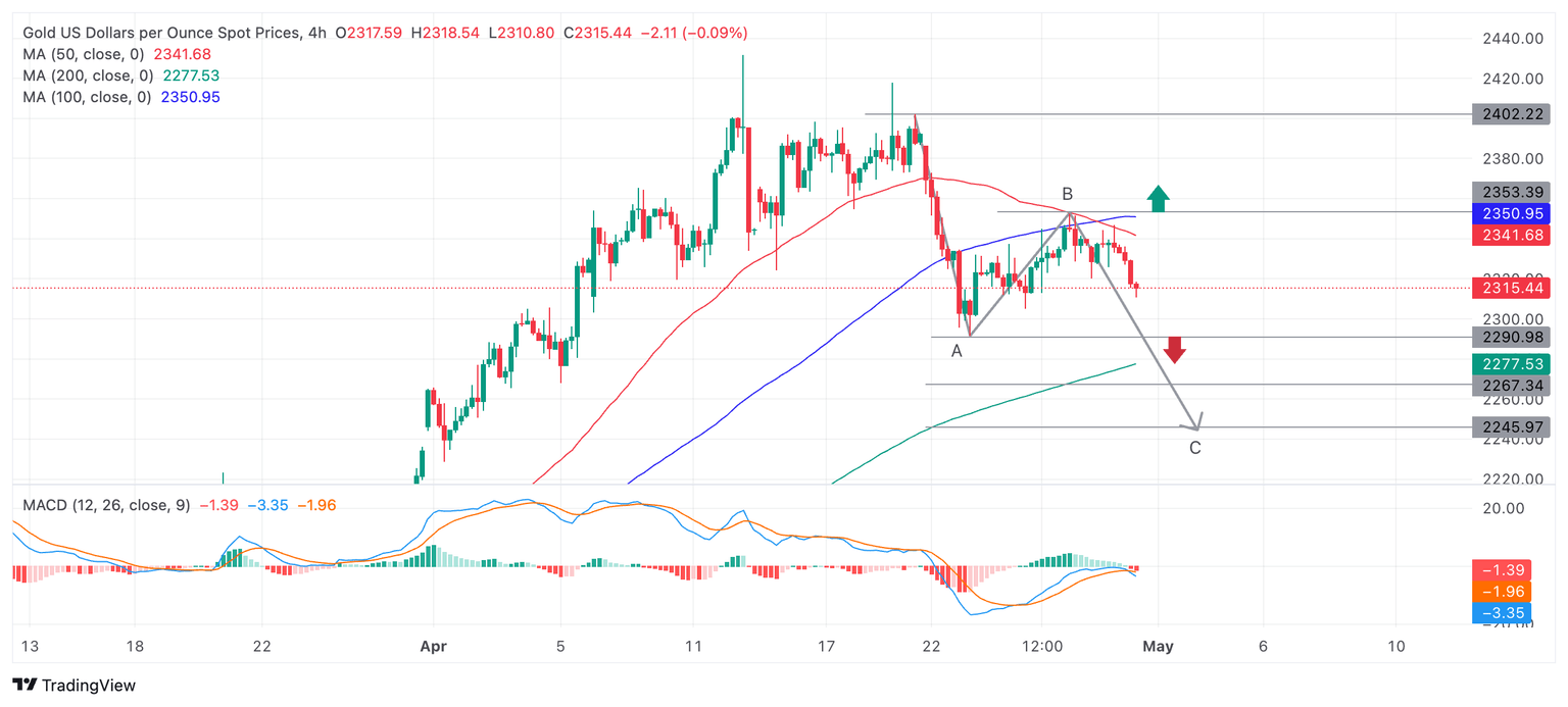 Gold price pushes down to $2,300 threshold after US employment costs rise