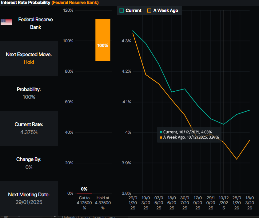 Inflation data could shifttraders expectations of Fed easing. Meanwhile, money market futures data has shown that most investors are expecting just 25 basis points of easing, leaving the fed funds interbank rate at 4.00%, down from the current 4.25% - 4.50% range.