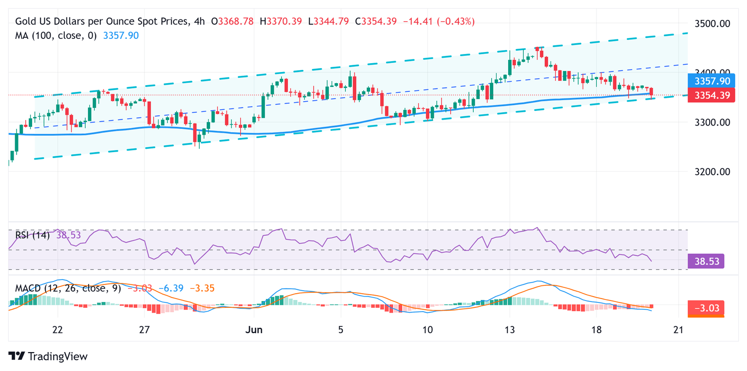 From a technical perspective, the intraday slide drags the Gold price below the 100-period Simple Moving Average (SMA), to a pivotal support marked by the lower boundary of a short-term ascending channel. Given that oscillators on the daily chart have been losing traction and gaining negative momentum on hourly charts, some follow-through selling should pave the way for an extension of this week's retracement slide from a nearly two-month high. The XAU/USD pair might then accelerate the fall towards the $3,323-3,322 intermediate support before eventually dropping to the $3,300 round figure.