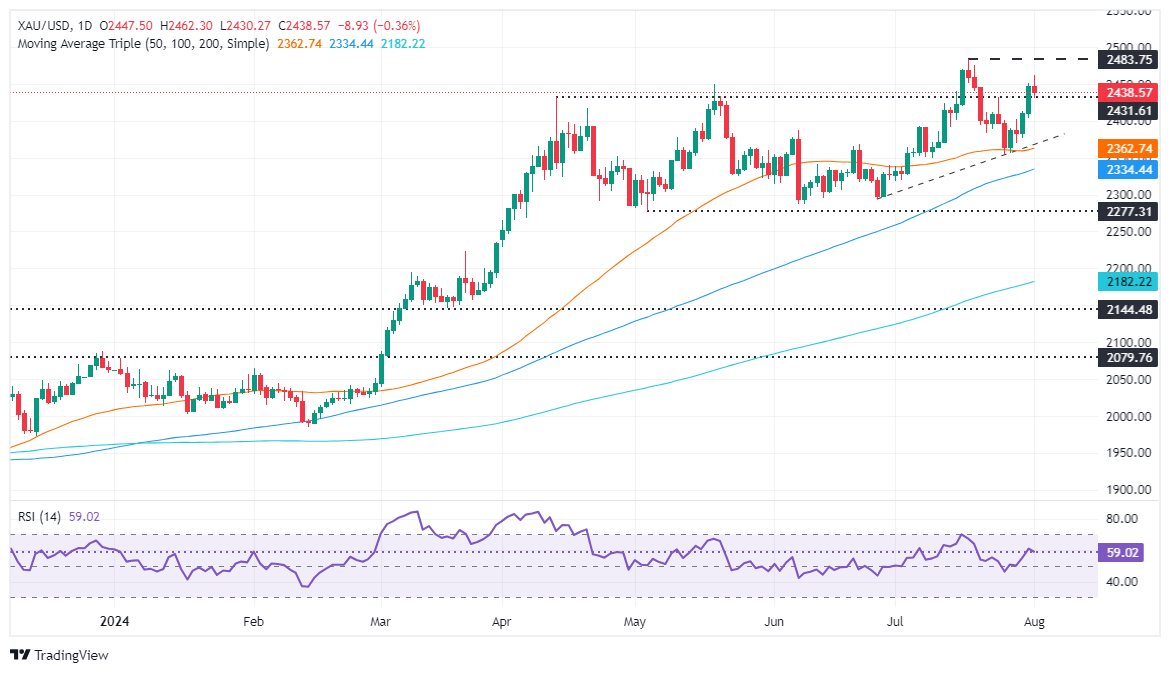 On the other hand, if XAU/USD climbs past $2,450 and challenges the daily top at $2,462, the all-time high (ATH) at $2,483 is up next, followed by the psychological $2,500 mark