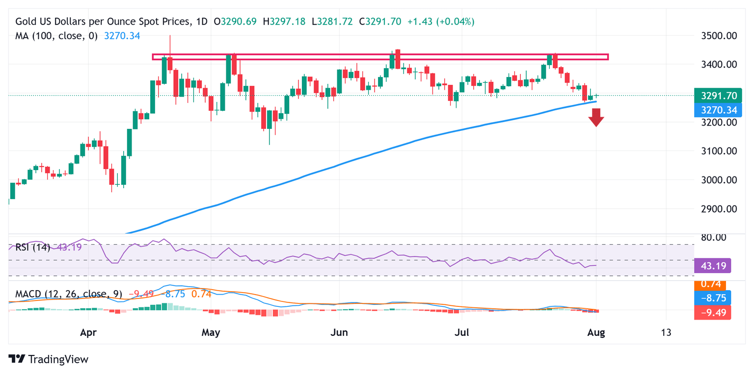 On the flip side, the 100-day Simple Moving Average (SMA), around the $3,270 region, nearing a one-month low touched on Wednesday, might continue to protect the immediate downside. A convincing break below could drag the Gold price to the June swing low, around the $3,248-3,247 region. The downward trajectory could extend towards the $3,325 intermediate support before the commodity eventually drops to test the $3,200 round figure.