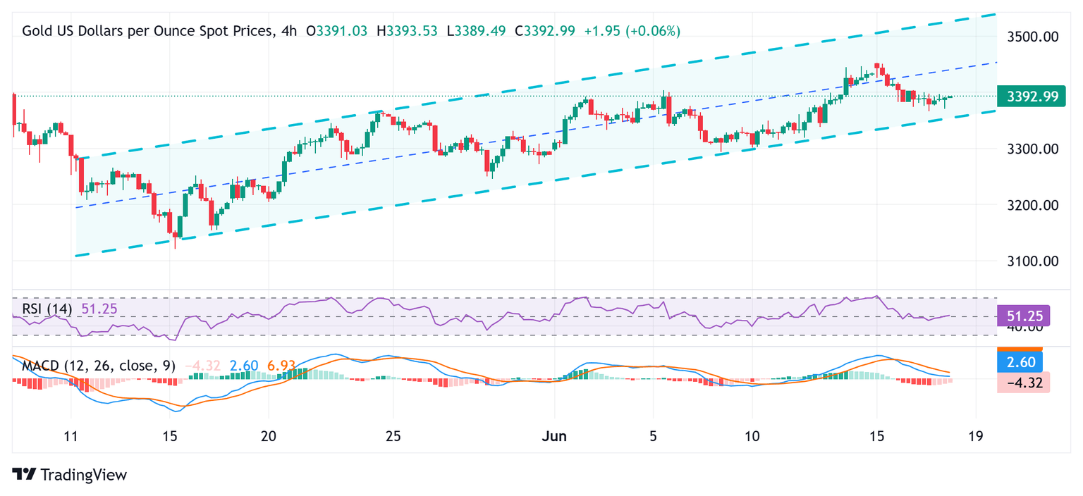 Gold price (XAU/USD) remains on the defensive below the $3,400 mark through the first half of the European session as traders opt to wait for the outcome of the highly-anticipated FOMC meeting. With a no-interest rate change decision fully priced in, the so-called dot plot, alongside Fed Chair Jerome Powell’s comments, will be scrutinized for cues about the future rate-cut path. This will play a key role in influencing the near-term US Dollar (USD) price dynamics and provide some meaningful impetus to the non-yielding yellow metal.