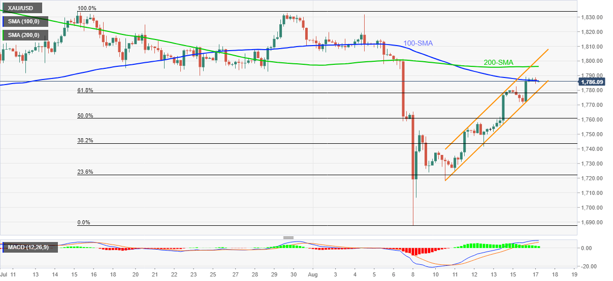 Previous update: Gold (XAU/USD) eases inside a choppy trading range around $1,790, down 0.10% intraday near $1,785 heading into Tuesday’s European session. The yellow metal rose during the last four days to consolidate the August 08 slump, before a recent pullback.