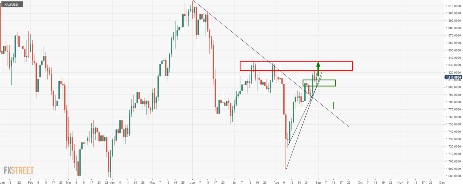 Meanwhile, the price of gold remains in bullish territory and eyes a run to test the 1,834s.