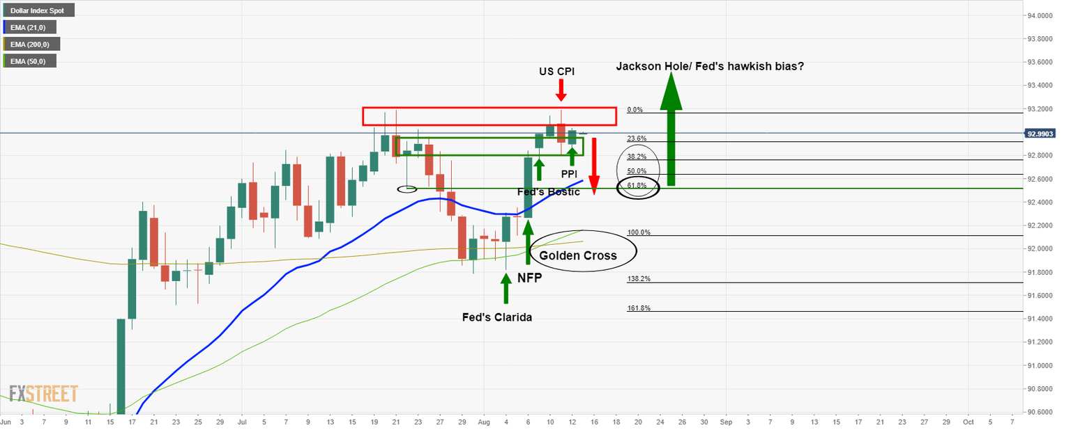 In the prior analysis, US dollar teases reversal traders, Golden Cross underpins, it was anticipated that there would be some let-up in the greenback's strength ahead of the Jackson Hole: