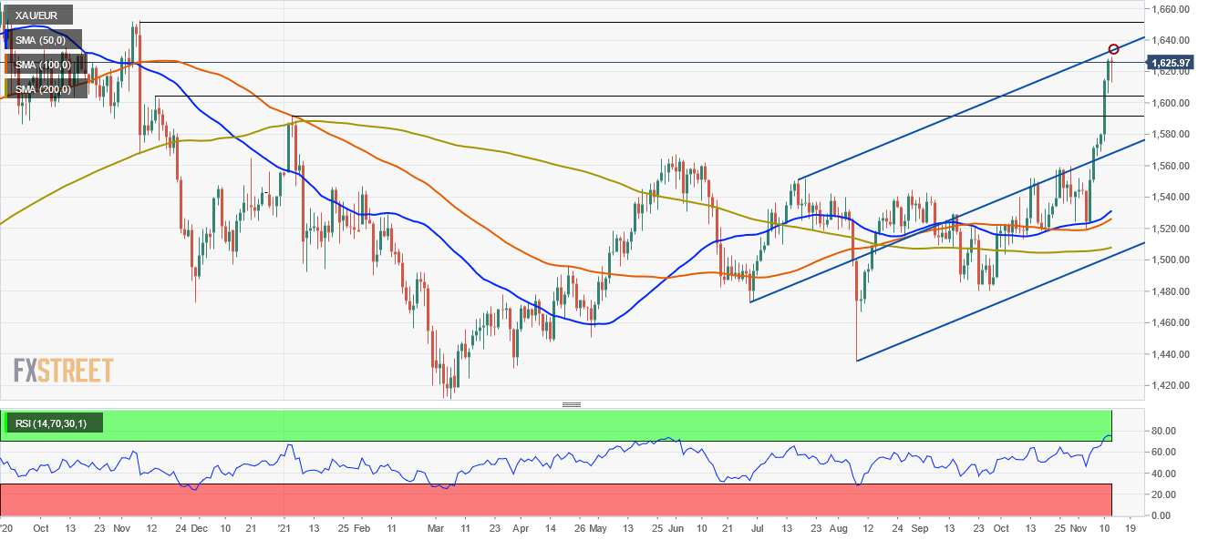 - XAU/EUR prints a new year-to-date high at €1,629.29.
