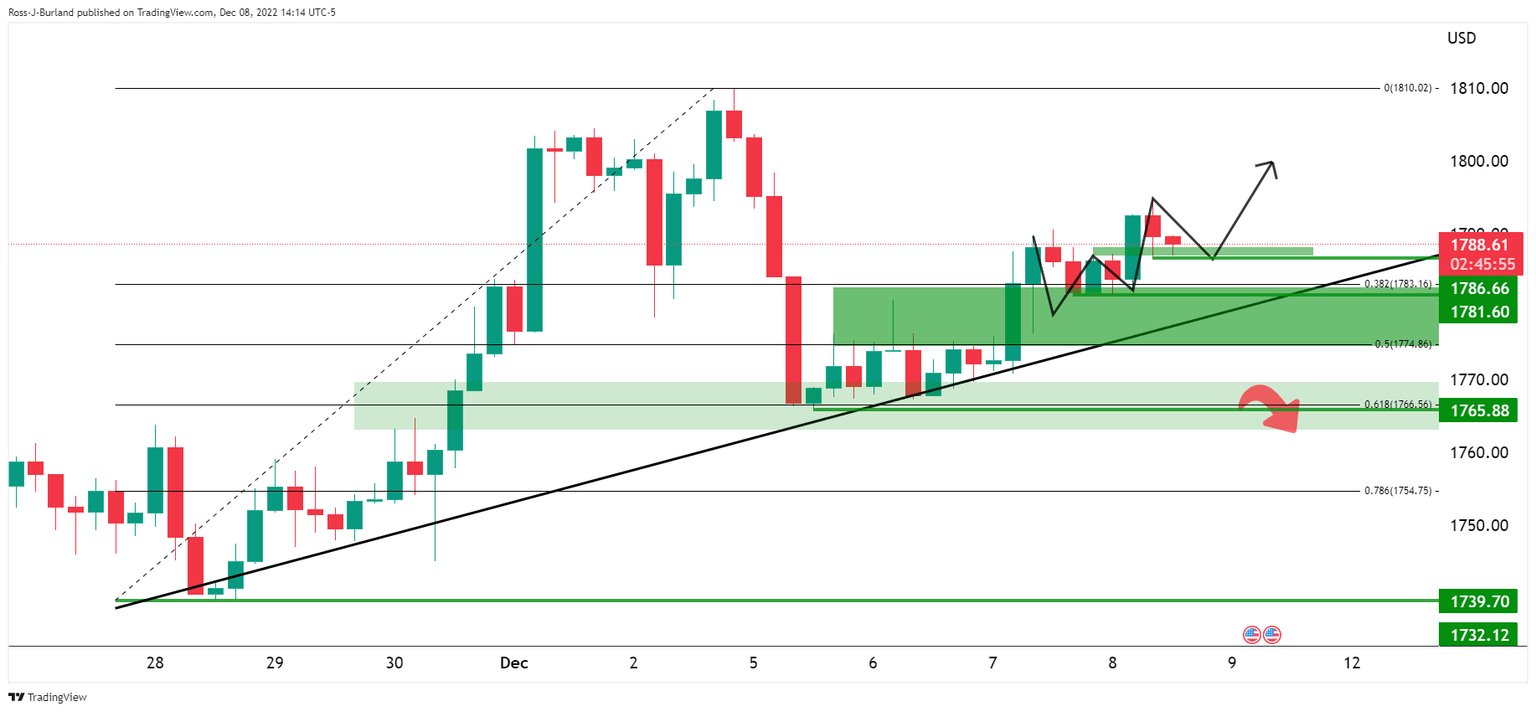 Gold price is up on the day by some 0.22% after rising from a low of $1,781 to a high of $1,794.88 so far on Thursday. Markets have been relatively quiet on the day with little data released and the Federal Reserve in a blackout. Nevertheless, the US dollar eased, while investors positioned themselves ahead of key US inflation data and the Federal Reserve's policy meeting due next week.
