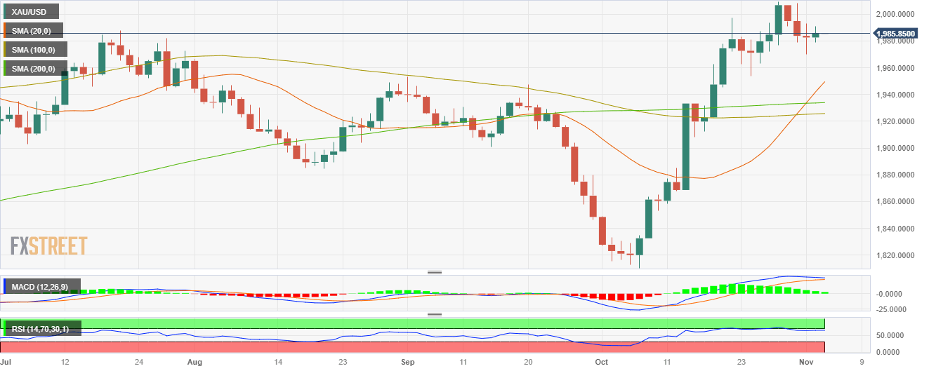 - XAU/USD advanced slightly to $1,985, seeing 0.15% gains.