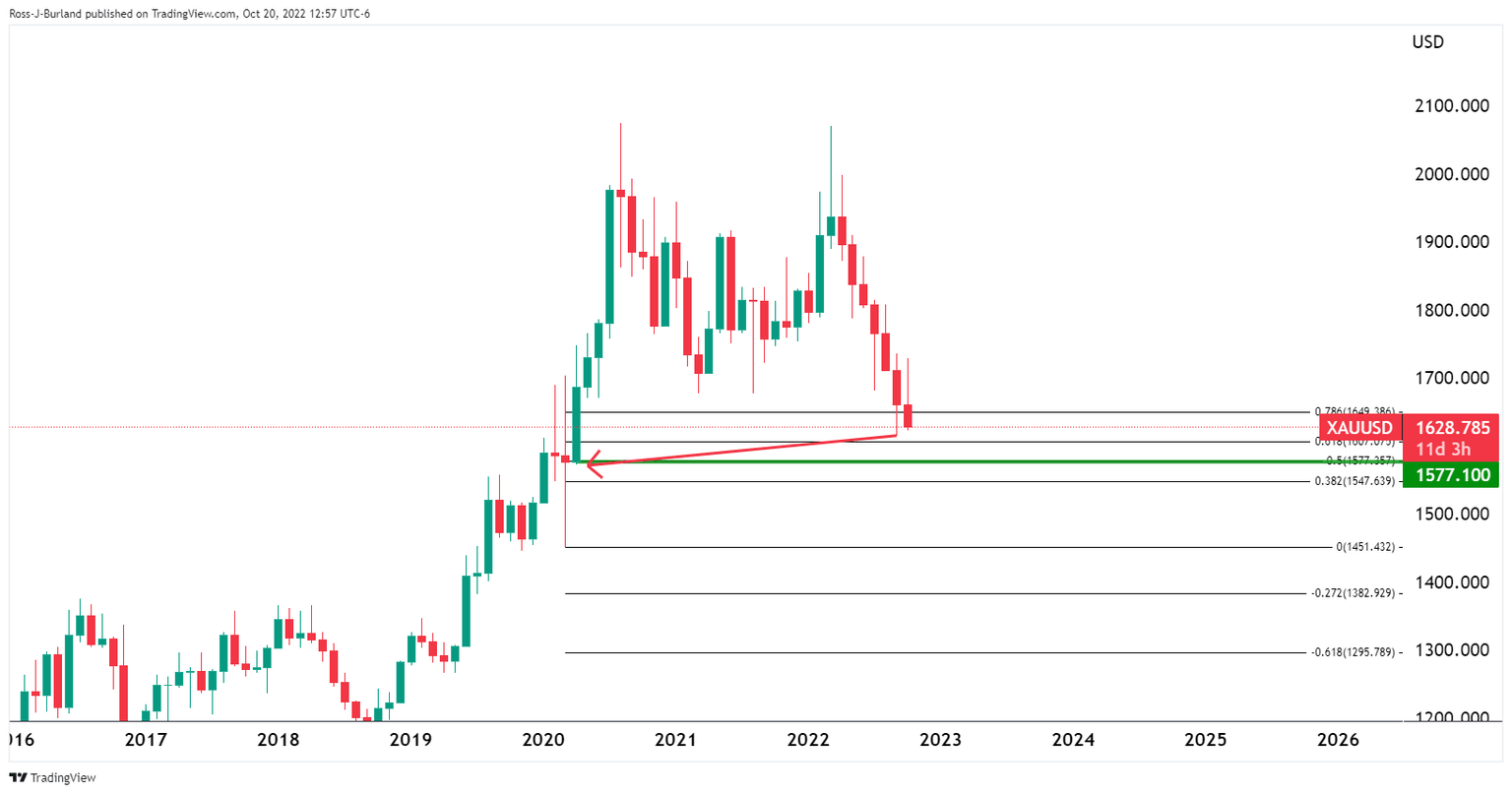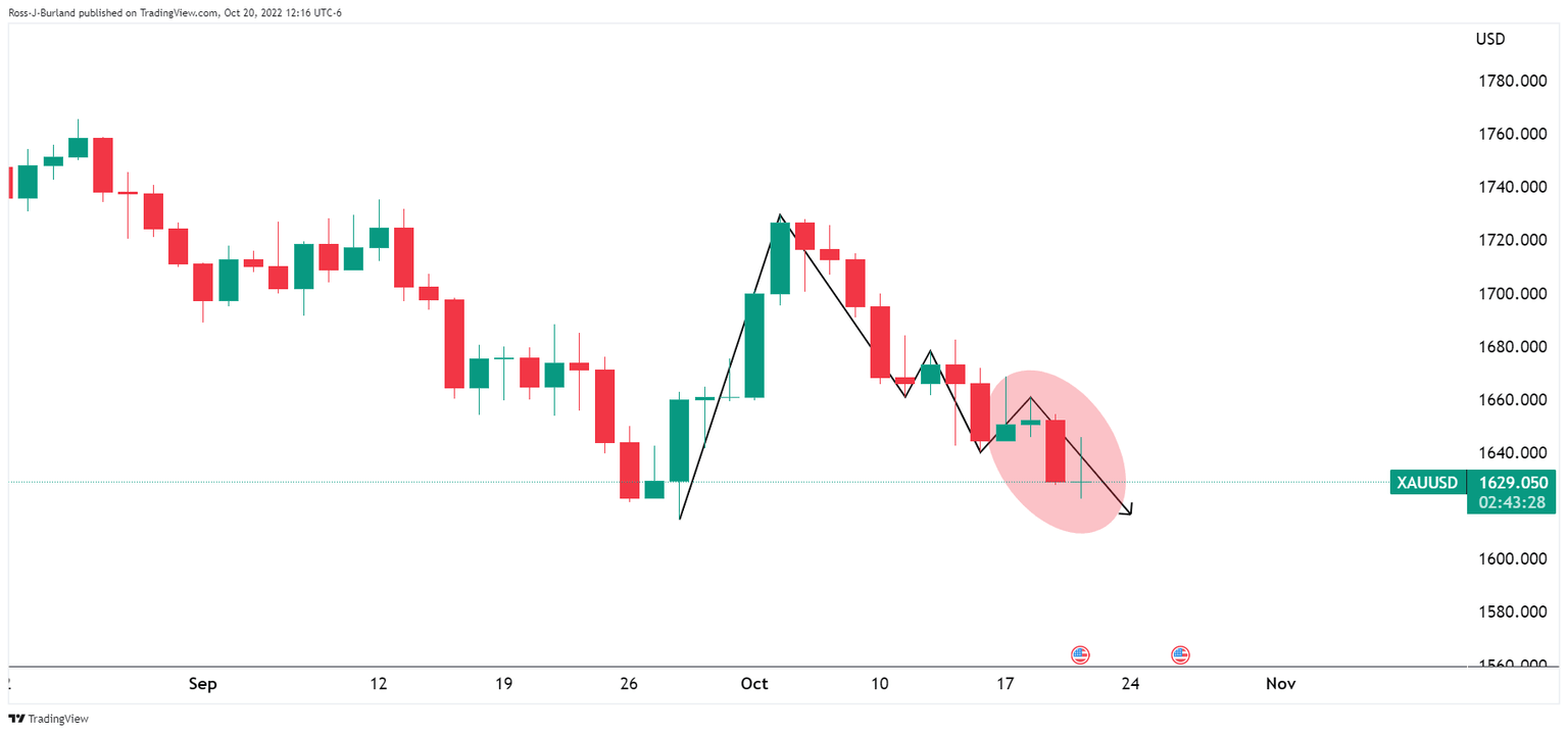 At the start of the week, within the pre-open market analysis on gold, Chart of the Week, Gold Price: Halloween comes early, XAU/USD back below critical bearish structure $,1670, the downside was marked as the path of least resistance as follows: