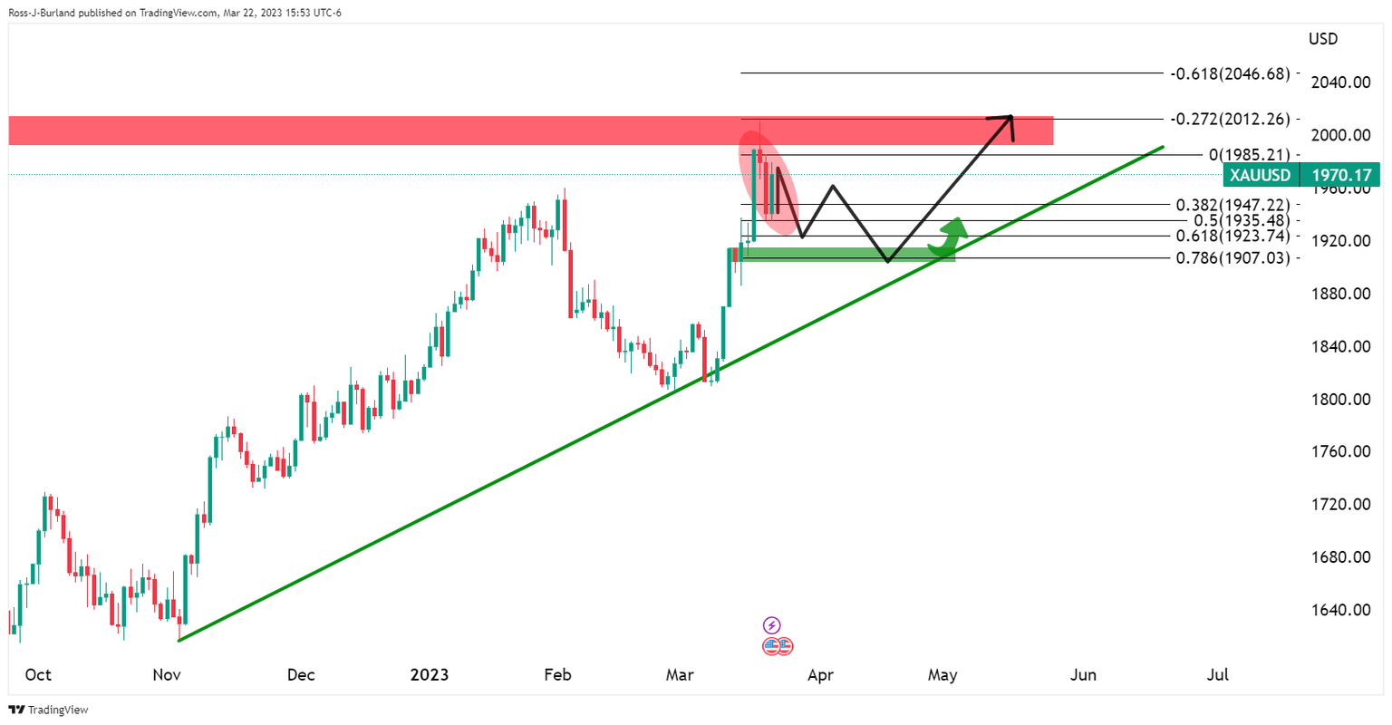 As per the start of the week´s analysis, Gold, Chart of the Week: XAU/USD is front side of the trend ahead of the Fed, where a correction was expected ahead of the Federal Reserve, we have seen two 'way business into and around the event.