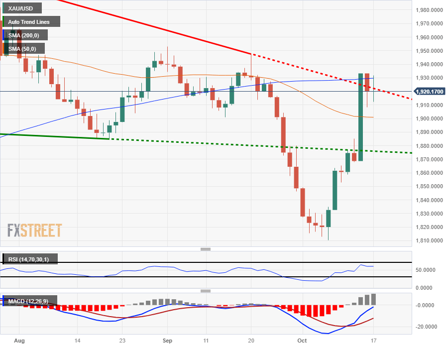 XAU/USD kicked off Tuesday trading near $1,919 before seeing a steady rise into an intraday high of $1,931.65, but the day's momentum is proving short-lived as Gold bids settle back into near-term consolidation $1,920.
