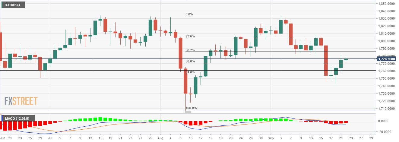 Update: Gold traded with a mild positive bias through the early European session and was last seen hovering near around the $1,778 region, just below weekly tops touched in the previous day. A subdued US dollar price action seemed to be the only factor that extended some support to the dollar-denominated commodity. That said, the risk-on impulse in the markets acted as a headwind for traditional safe-haven assets and failed to assist the XAU/USD to make it through the 200-hour SMA barrier. The global risk sentiment got a strong lift after struggling property giant China Evergrande said it would pay some bond interest due on Thursday.