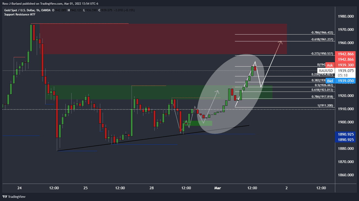 - Gold prices look set to reclaim $1,970.00 as the Russia-Ukraine war intensifies.