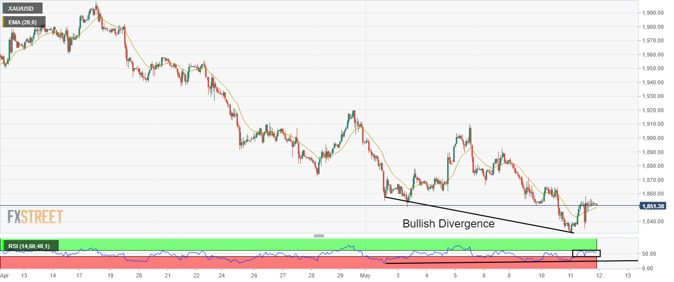 Gold Price (XAU/USD) has frozen at around $1,852.00 after the US Bureau of Labor Statistics unveiled the US Consumer Price Index (CPI) for the month of April. The precious metal is oscillating in a minor range of $1,846.44-1,858.30 as investors are planning the next move after the higher-than-expected inflation figures. The US agency reported yearly inflation at 8.3% against the estimate of 8.1% while the core CPI figure has climbed to 6.3%, higher than the forecasts of 6%.