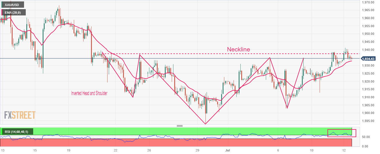 - Gold price is expected to deliver an Inverted H&S breakout after surpassing the neckline plotted around $1,940.00.