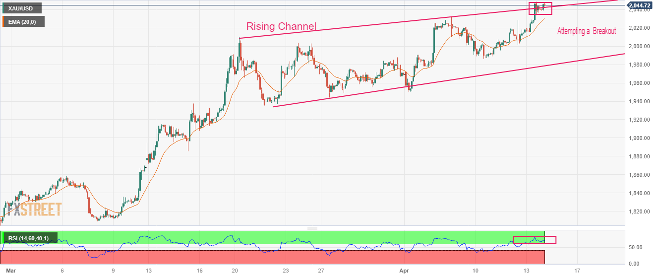 Gold price (XAU/USD) is gathering strength to capture the critical resistance of $2,050.00 in the Asian session. The precious metal is looking to resume its upside journey after mild exhaustion in the upside momentum.